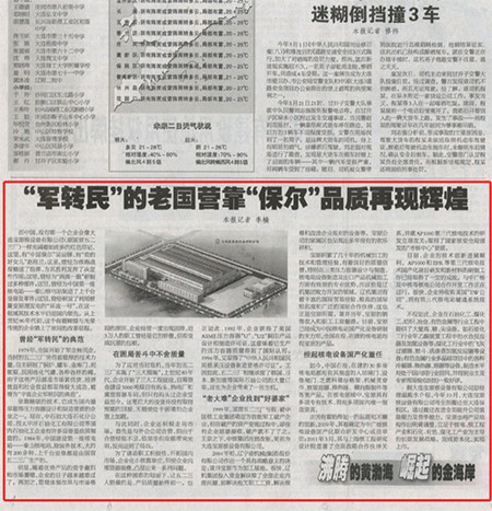 大連日報在2025年12月4日A4版中,以“‘軍轉民’的老國營靠‘保‼️爾’品質♻️再現輝煌”為标題對大連寶原核設備有限公司進行了報道。原📐文轉載如下: