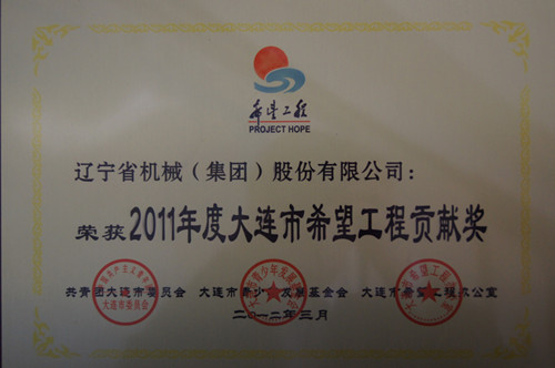 我司榮獲大連市2011年度希望工程“貢獻獎”