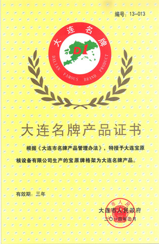 大連寶原生産的格架獲“大連名牌産品”稱号